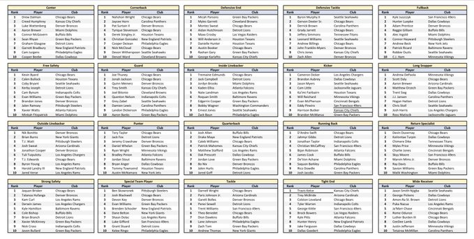 What we do know is that the Bears had the top vote-getter at the following positions: